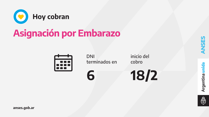 Con la utilización de la tarjeta de débito, hoy cobran la Asignación por Embarazo las titulares con documentos finalizados en 6.