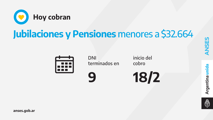La ANSES anunció que hoy viernes 18 de febrero de 2022 se pagan jubilaciones, pensiones, Asignación Universal por Hijo, Asignaciones Familiares, Asignación por Embarazo y los programas Alimentar para AUH, Hogar y Progresar.
