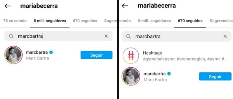 Todo parte de la cuenta de Instagram de Becerra. La artista y el futbolista español Marc Bartra se siguen y se prodigan likes mutuamente, indica la versión.